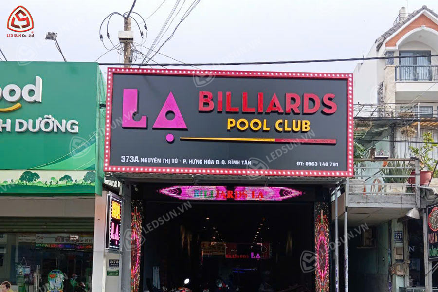 Bảng hiệu quán bida đóng vai trò quan trọng trong việc thu hút khách hàng và khẳng định thương hiệu. Một bảng hiệu được thiết kế bắt mắt không chỉ giúp quán tạo ấn tượng mạnh ngay từ xa mà còn thể hiện phong cách riêng, chuyên nghiệp và đẳng cấp. Để đạt được hiệu quả tối ưu, việc lựa chọn chất liệu, kiểu dáng và quy cách thi công cần được đầu tư kỹ lưỡng. Trong bài viết này, hãy cùng Led Sun khám phá những lợi ích của bảng hiệu quán bida cũng như các yếu tố quan trọng cần lưu ý khi thiết kế để có được một bảng hiệu ấn tượng và bền bỉ theo thời gian.