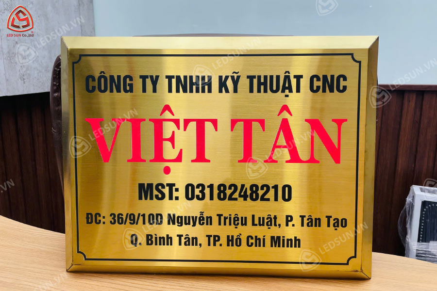 Nếu bạn đang tìm kiếm một đơn vị làm bảng tên công ty inox vàng xước chất lượng, giá tốt, thì Led Sun là lựa chọn đáng tin cậy. Với kinh nghiệm lâu năm trong lĩnh vực thiết kế và gia công bảng hiệu, chúng tôi cam kết mang đến sản phẩm đẹp, bền, đáp ứng mọi yêu cầu của khách hàng. Sử dụng chất liệu inox 304 hoặc inox 201 cao cấp, bảng tên tại Led Sun có độ bền vượt trội, chống gỉ sét và luôn giữ được vẻ sáng bóng theo thời gian. Công nghệ gia công hiện đại như cắt CNC, khắc laser, in UV hoặc ăn mòn hóa chất giúp từng chi tiết trên bảng tên sắc nét, tinh xảo. Bên cạnh đó, Led Sun nhận thiết kế bảng tên theo yêu cầu với đa dạng kích thước, kiểu dáng, phù hợp với mọi không gian. Không chỉ đảm bảo chất lượng, chúng tôi còn cung cấp mức giá cạnh tranh, hỗ trợ tư vấn tận tình và giao hàng nhanh chóng.
