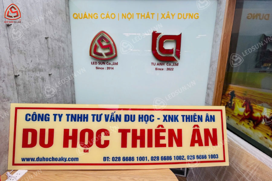 Led Sun tự hào là đơn vị chuyên làm bảng tên công ty mica chất lượng cao tại TP. Hồ Chí Minh. Với nhiều năm kinh nghiệm trong việc làm bảng tên công ty, chúng tôi cam kết mang đến sản phẩm đạt tiêu chuẩn về thẩm mỹ và độ bền, đáp ứng mọi nhu cầu của khách hàng từ thiết kế đơn giản đến phức tạp. Đội ngũ kỹ thuật viên chuyên nghiệp cùng quy trình sản xuất hiện đại giúp thời gian thi công nhanh chóng và chính xác. Ngoài ra, Led Sun cũng cung cấp dịch vụ tư vấn thiết kế miễn phí, giúp bạn chọn lựa mẫu bảng tên phù hợp với phong cách và ngân sách của doanh nghiệp. Hãy đến với Led Sun để sở hữu những bảng tên mica đẹp mắt, chất lượng, và bền lâu.